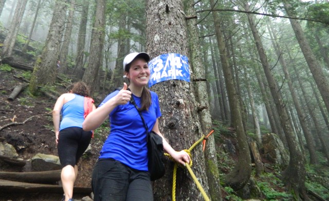 I also climbed a mountain last week! I survived the Grouse Grind. Yes, I got the shirt. My hands were muddy, my thighs were burning and my shirt was soaked, but it felt great. I took plenty of breaks and ended up with a time of 1:35. I was quite happy with myself.