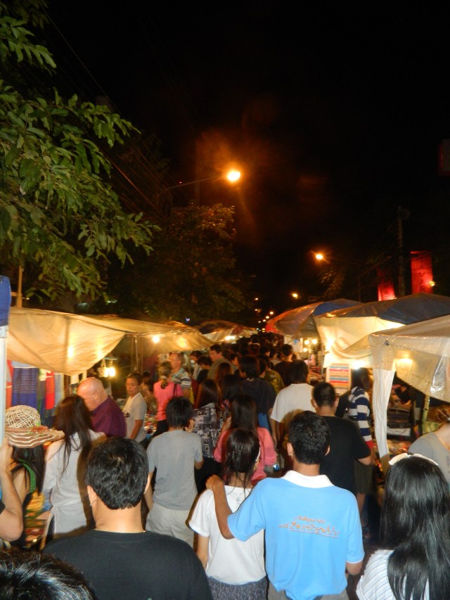 I return to Chiang Mai next Sunday, so I’ll totally be returning to that night market. It’s huge! You can buy just about anything. Every side street I saw was filled with stalls, so the market seemed to take over the city. It’s definitely a popular attraction, and the streets were packed with people (locals and tourists). It’s a shopping addict’s dream. I’m cheap, yet I managed to spend my food budget for the next week on lanterns and elephant things and gifts and jewelry. I also bought a chopstick set for the dinner parties of my non-existant life in my non-existant apartment. Some day!