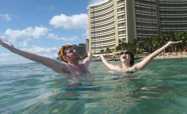 So far in Hawaii I’ve shot a gun (for the first time), hiked a mountain (Diamond Head), seen multiple rainbows, and spent a lot of time laying on the beach. It’s great! I even saw Santa in a hula skirt, holding a surfboard and a ukelele.