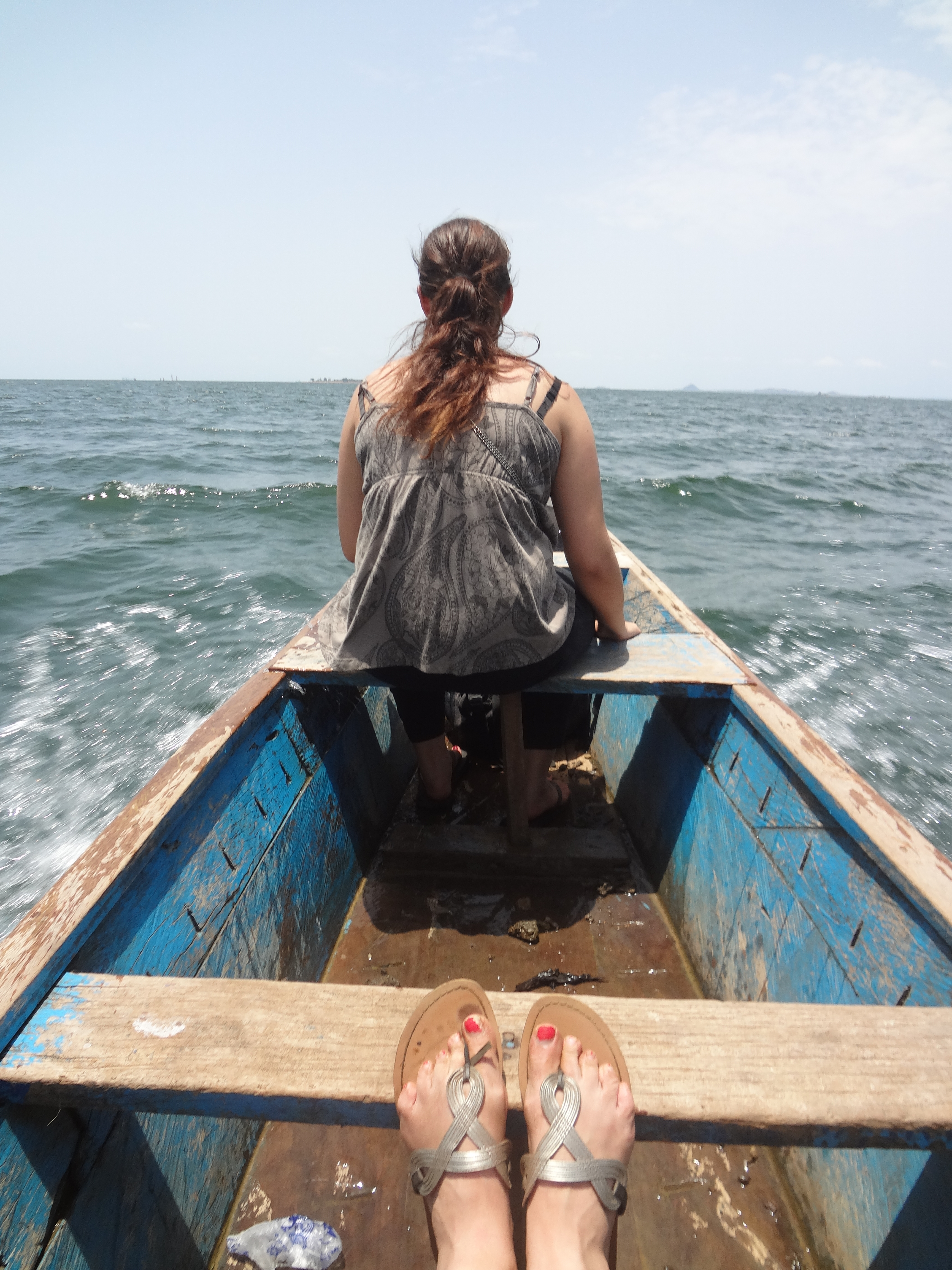 After the monkeys we got on the back of some motorcycles yet again and headed to a nearby village on Lake Volta. Of course the bike I was on broke down, so we all ended up hitchhiking the rest of the way to the shore. Once there, we talked a fisherman into taking us around the lake in his fishing boat for an hour. We all got sunburnt on the way but it was awesome to explore the largest reservoir by surface area in the world in an old wooden fishing boat slowly filling with water (which Britte was forced to constantly bail out from the back of the boat).