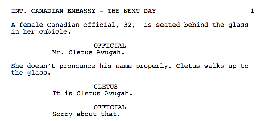 “We’re ready for you,” said the producer, leading us to another room that had been transformed into an embassy office. Big lights filled the corners and that giant window rested on a desk, supported by men holding it at both sides. Little plastic Canadian flags were taped to the wall, and ten crew members sat around doing their thing. I was introduced to the director and assistant director, and before I knew it we were practicing our lines under the lights. Much like people on the verge of death, I was experiencing a strange sense of calm without the fear and anxiety I had anticipated. I was, however, already sweating profusely. Did you know your upper lip has sweat glands? Well, you do now. It’s the worst.